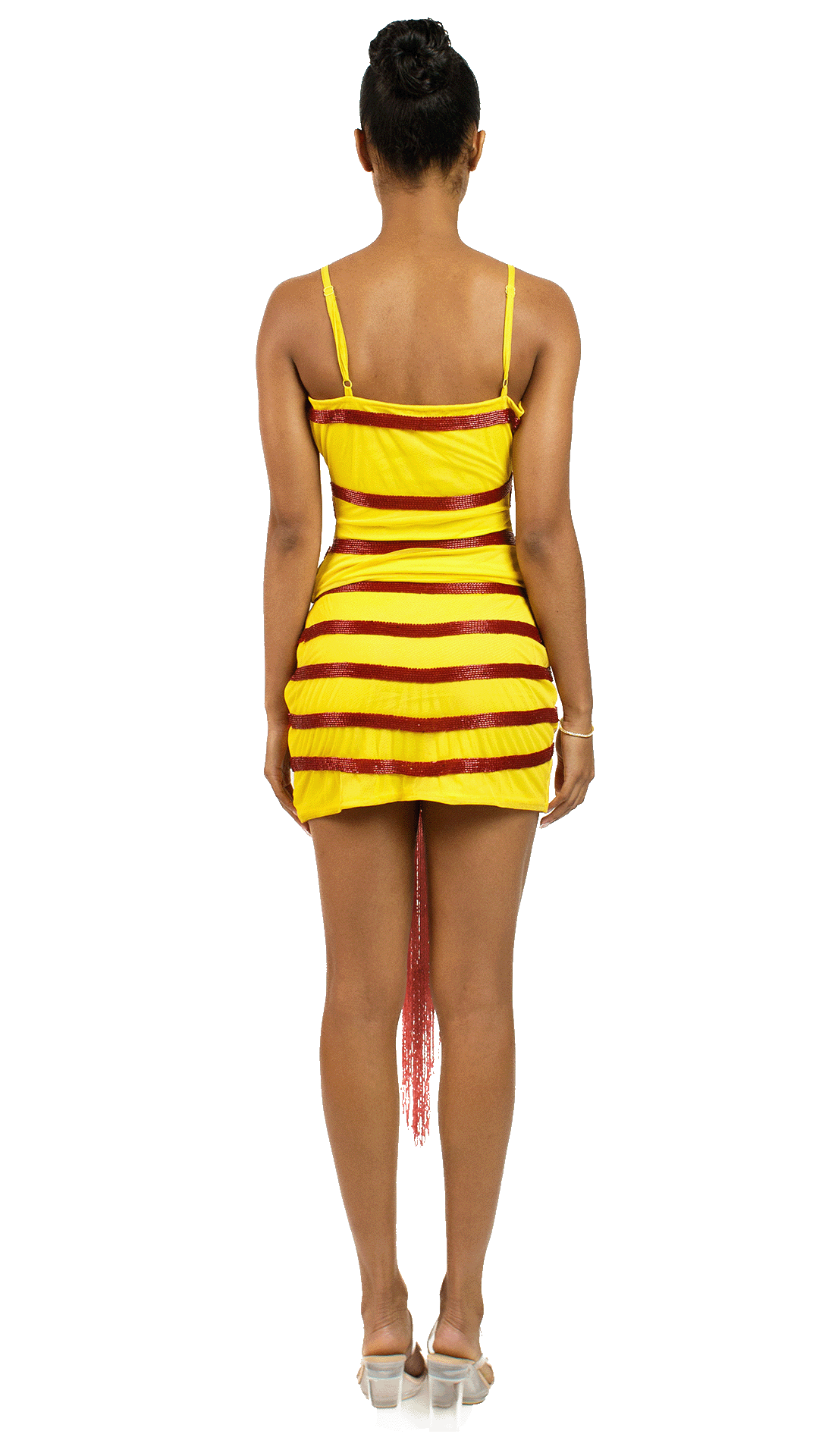 The Bao Set. The fitted top and coordinating skirt are crafted from stretch cotton with hand-beaded mesh accents that contour the body and enhance movement. This set is designed to feel sculptural yet wearable, making it ideal for events that call for something elevated but effortless.